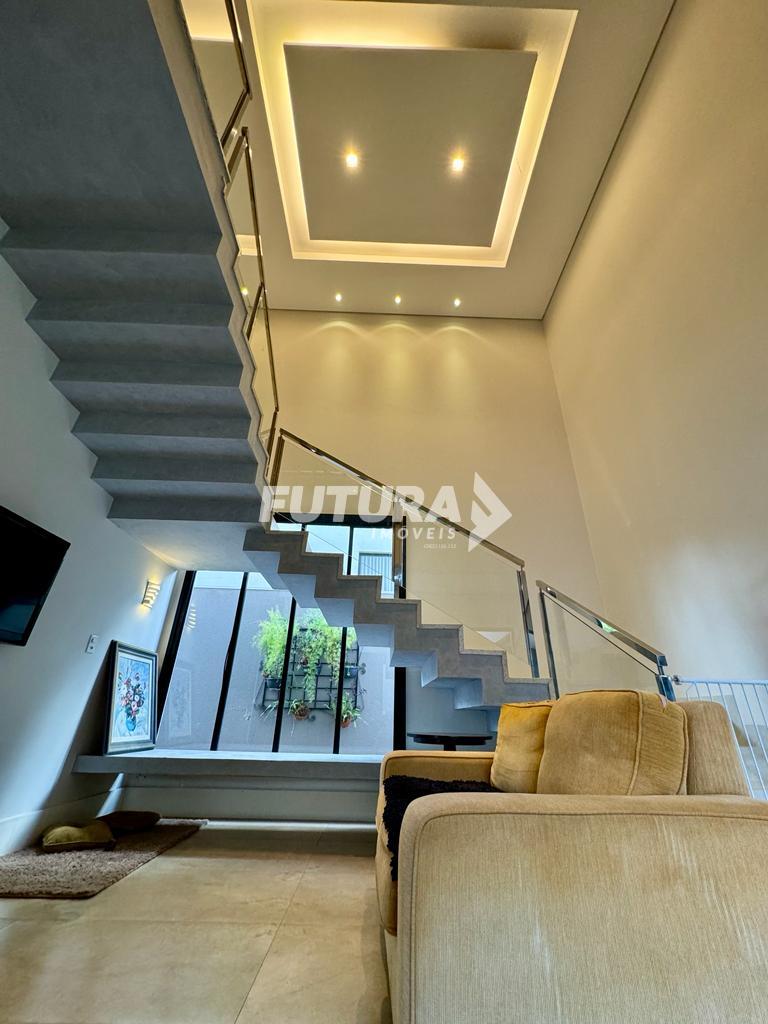 No piso térreo, o destaque fica por conta da integração perfeita entre sala, cozinha planejada e espaço gourmet, criando um ambiente ideal para receber. Conta ainda com 1 suíte, hall de entrada, despensa, área de serviço, estendal e uma área externa encantadora com hidro spa para 5 pessoas , sauna, banheiro de apoio e um quintal amplo totalmente gramado com plantas frutíferas. Garagem para 4 veículos, sendo 2 cobertos, janelas automatizadas.
