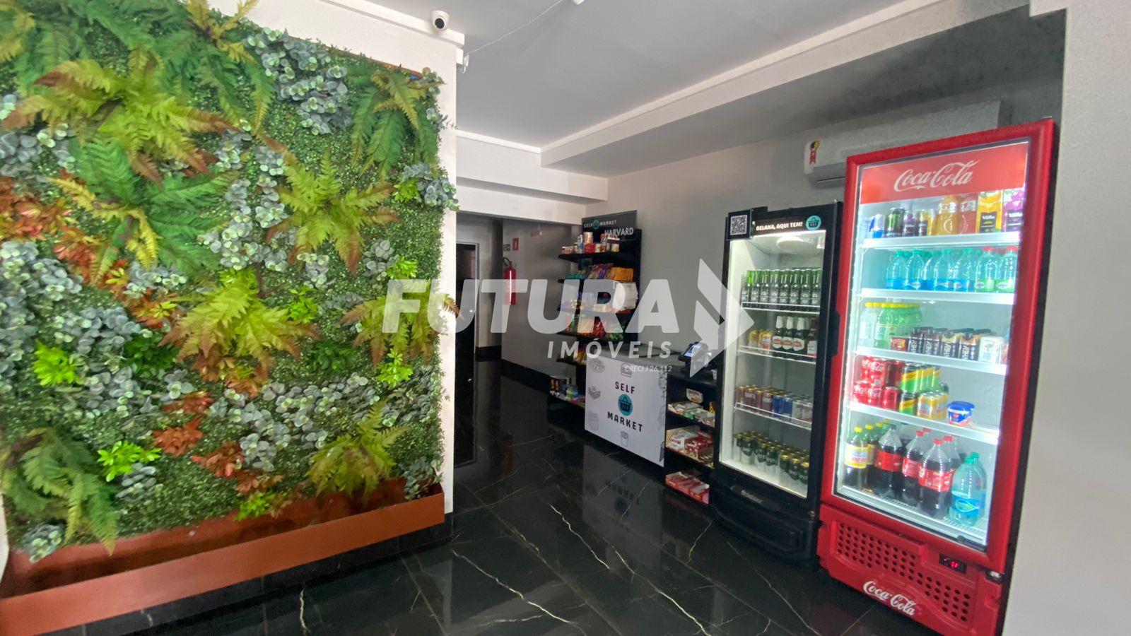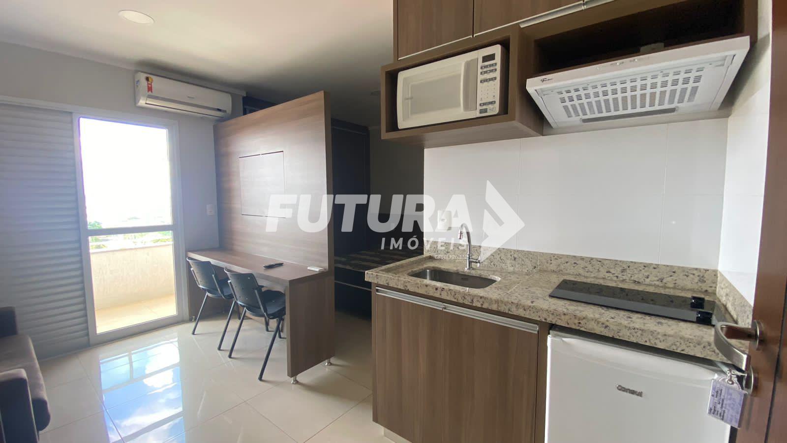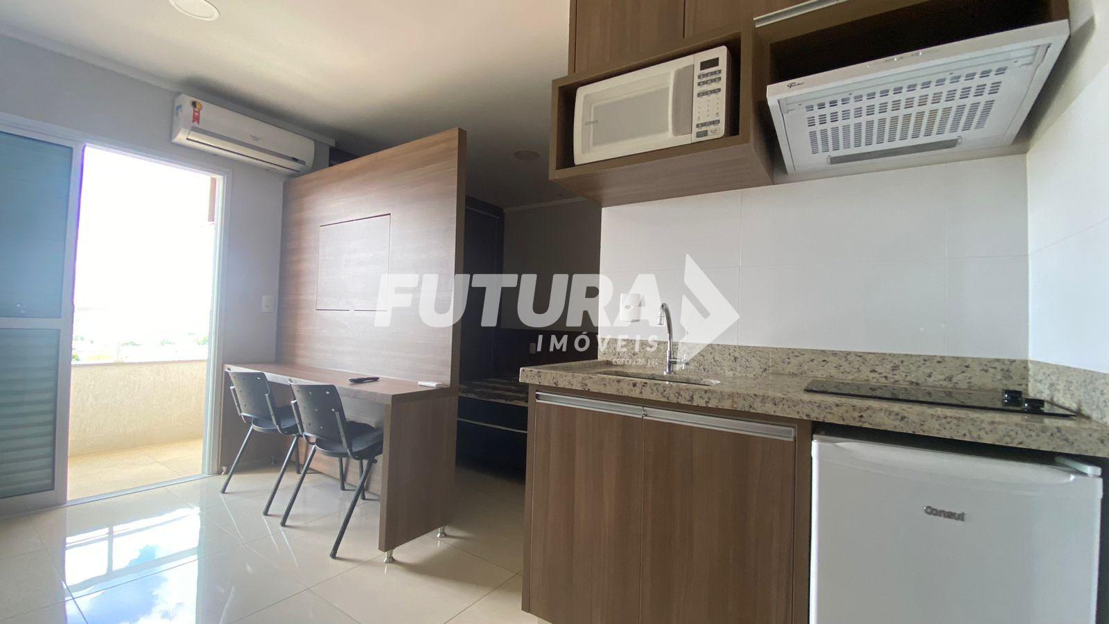 Sala, cozinha, quarto integrados, banheiro, 01 vaga para carro coberta. Flat 100% mobiliado. O prédio possui academia, sala de reunião, sala de jogos e self market.