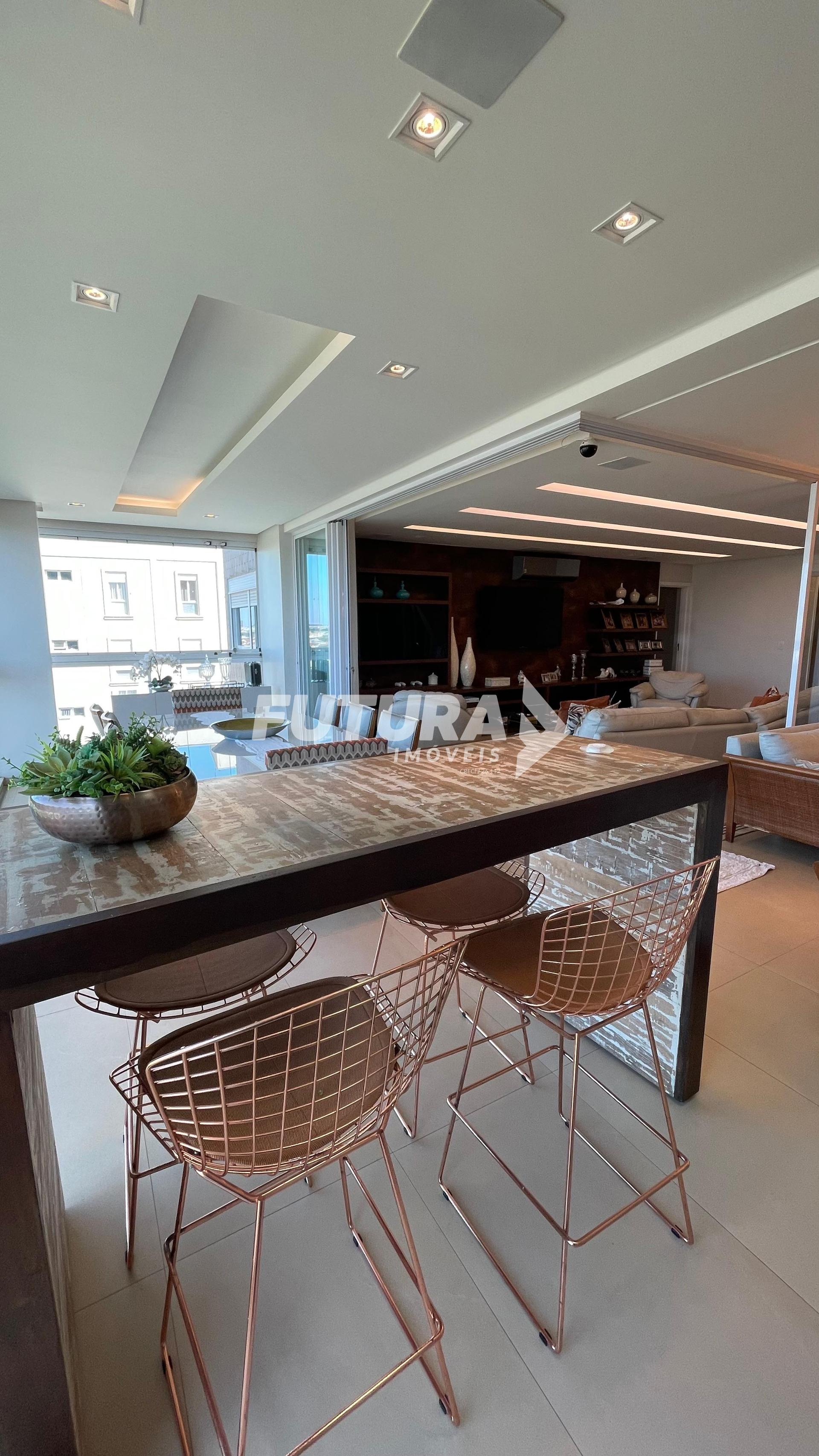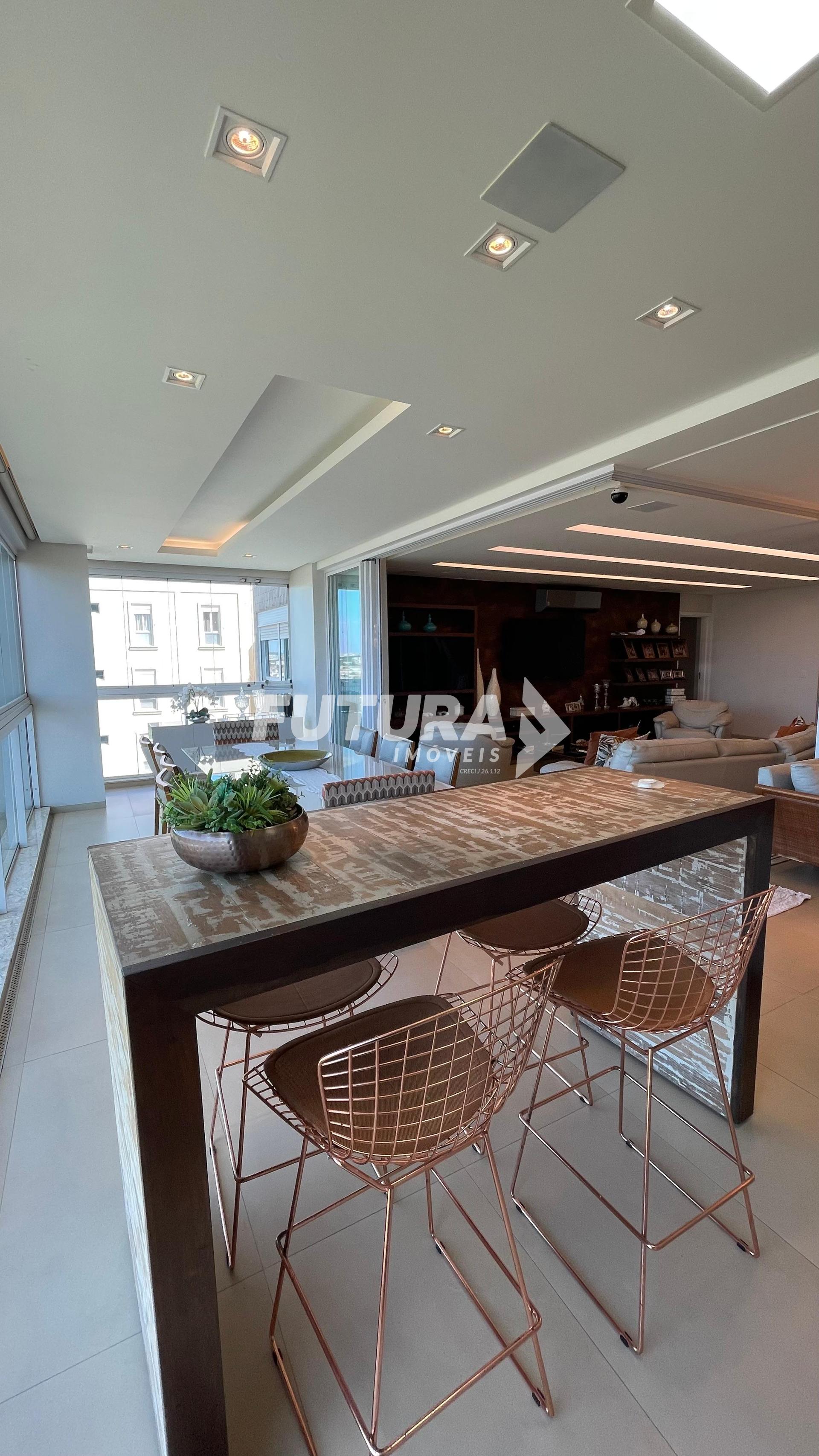 Apartamento sofisticado com 197 m2, oferecendo 3 suítes amplas e totalmente armariadas. A sala é integrada e conta com cortinas Hunter Douglas motorizadas, proporcionando elegância e praticidade. Possui churrasqueira privativa com bancada de apoio, ideal para receber amigos e familiares. O conforto é garantido com chuveiros aquecidos por aquecedor a gás central. São 3 vagas de garagem paralelas, além de acabamentos de alto padrão em todos os ambientes. Um imóvel completo para quem busca exclusividade, espaço e bem-estar.