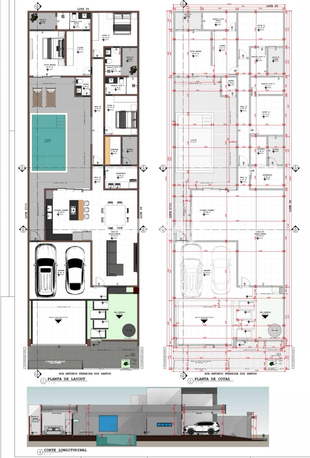 Imóvel com 300,00 m² de área do terreno e 183,92 m² de área construída + 15,00 m² de área de piscina.