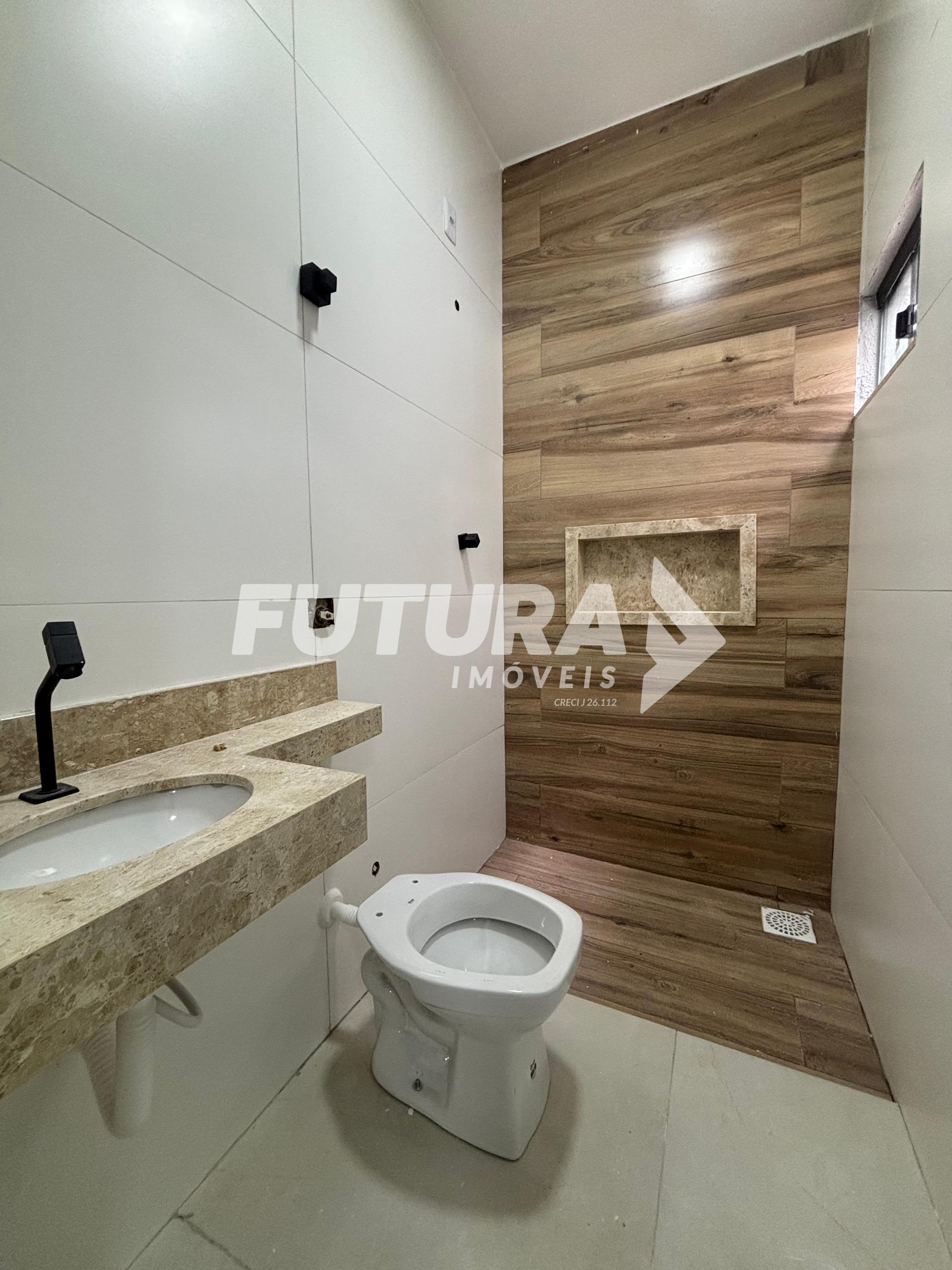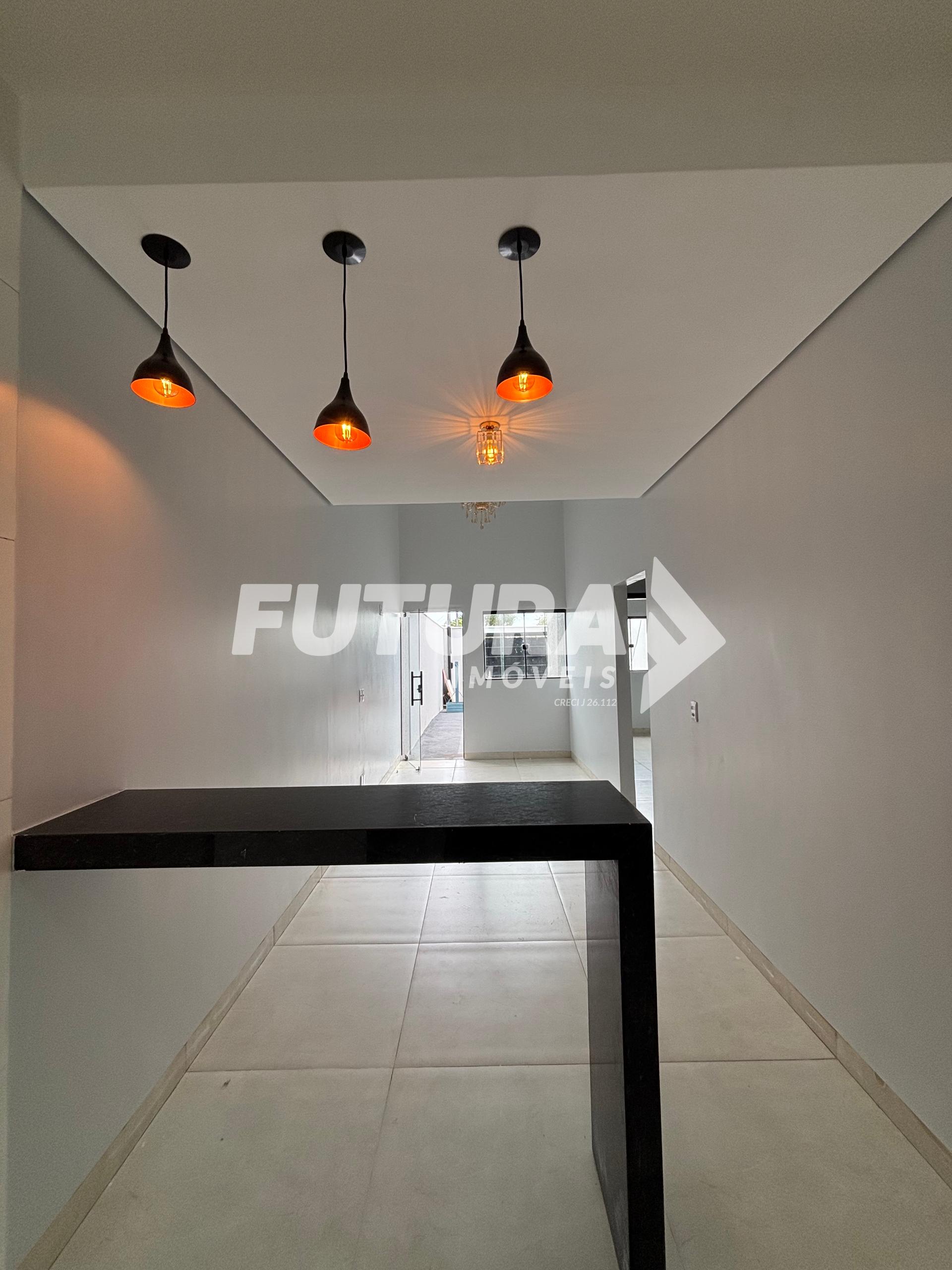 3 quartos sendo 2 suítes, e banheiro social.(banheiro social pode ser transformado em suite também) Sala com pé direito alto e lustre Cozinha Lavanderia coberta Garagem descoberta com espaço para 3 carros.