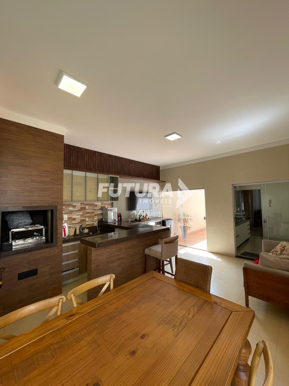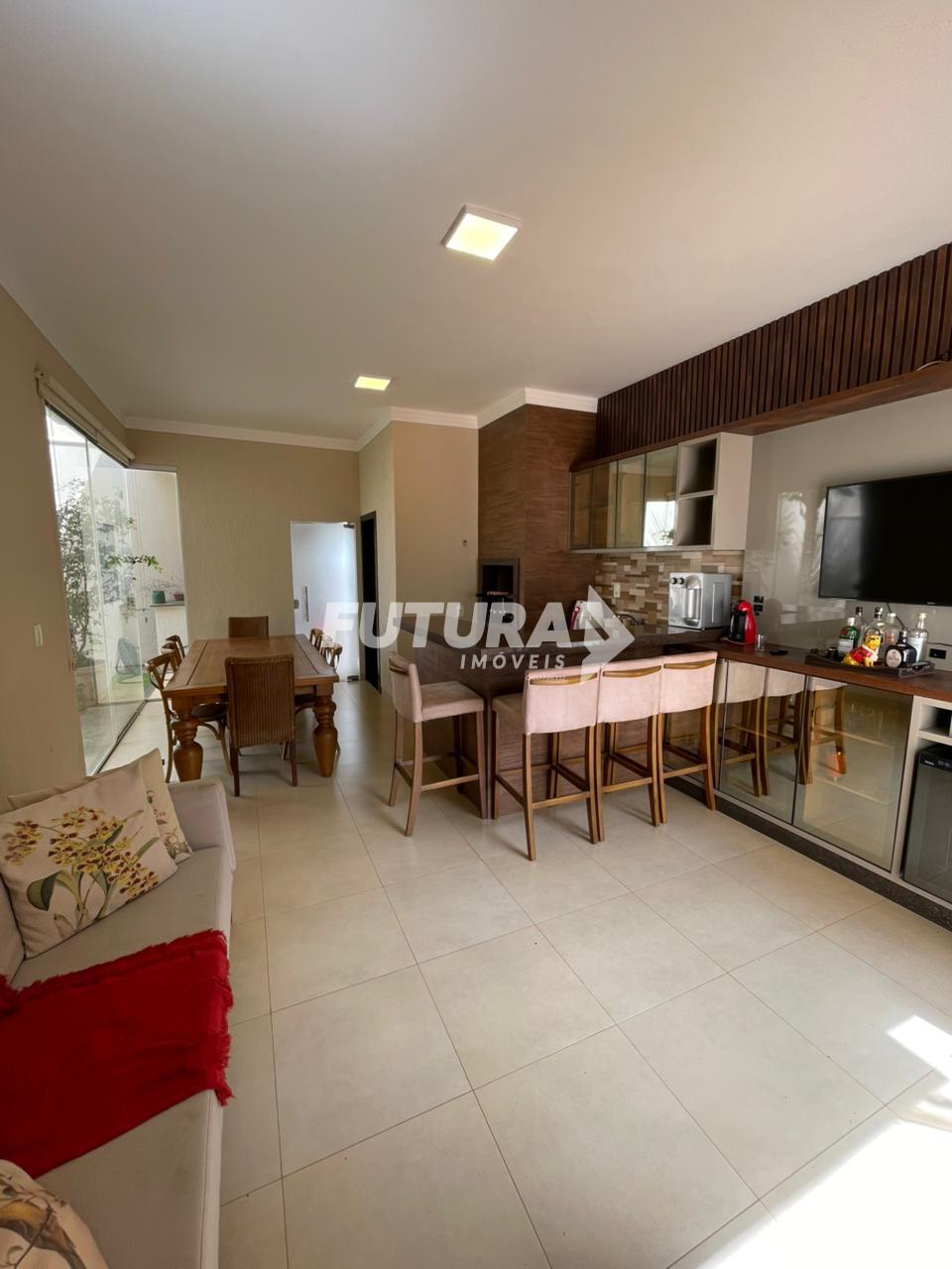 Excelente oportunidade para quem busca conforto, segurança e sofisticação. Esta belíssima casa à venda conta com 3 suítes totalmente armariadas, oferecendo praticidade e organização em todos os ambientes. A garagem coberta para 2 carros garante comodidade e proteção. A área social é composta por sala de TV e sala de estar armariadas, integradas de forma funcional à cozinha planejada, criando um ambiente moderno e acolhedor. O imóvel dispõe ainda de uma área gourmet completa, com churrasqueira, bancada de apoio e lavabo, perfeita para receber amigos e familiares. A área de serviço conta com estendal, trazendo praticidade ao dia a dia. Nos fundos, o imóvel oferece um quintal gramado, ideal para momentos de lazer e contato com a natureza. A casa é totalmente mobiliada e equipada com sistema de segurança completo, incluindo câmeras, portão eletrônico e cerca elétrica, além de energia solar, proporcionando economia e sustentabilidade. Localizada em excelente bairro, com localização estratégica, próxima a comércios, serviços e vias de fácil acesso, esta é uma opção perfeita para quem busca qualidade de vida e valorização imobiliária.