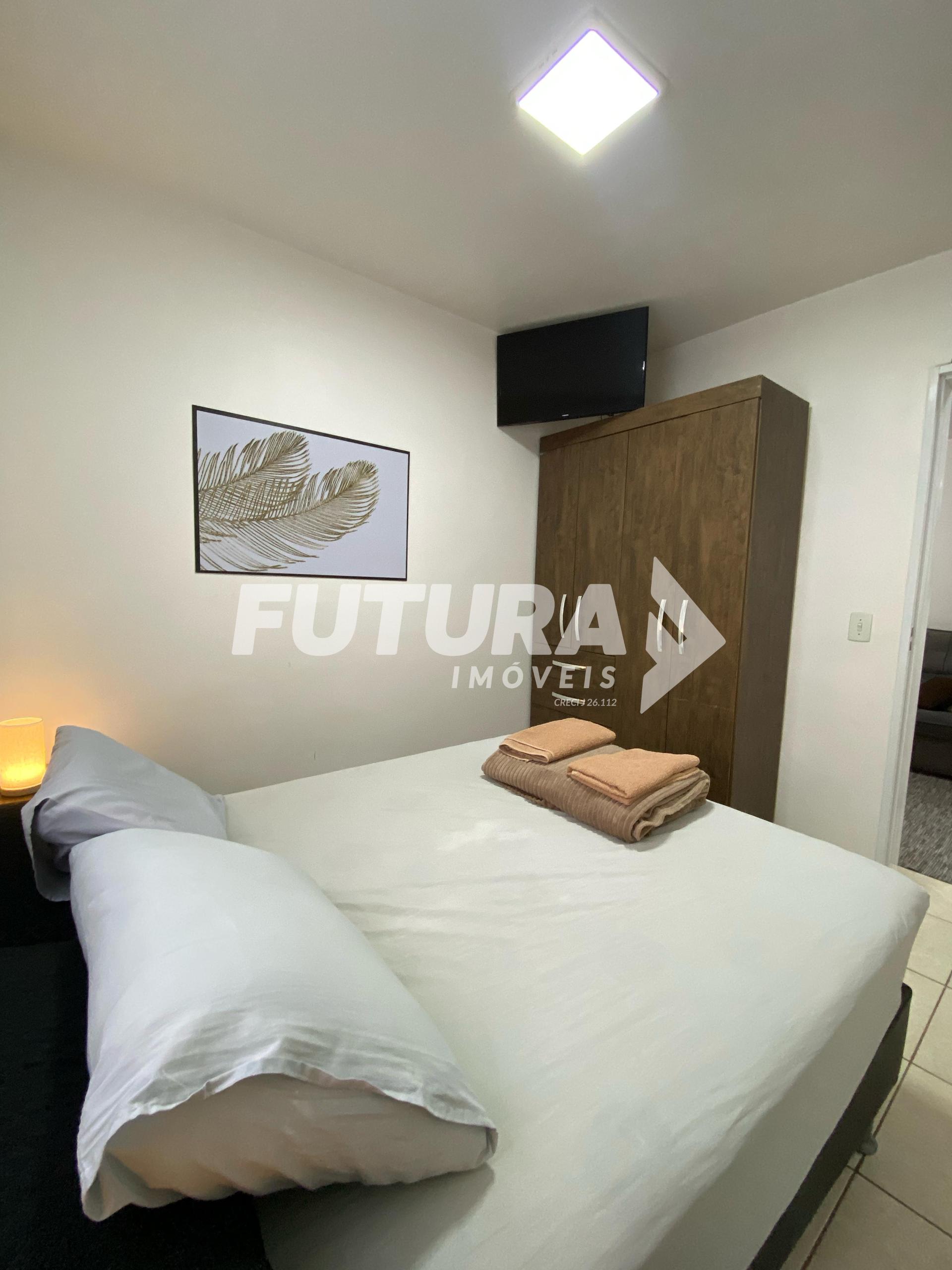 * ?Quarto 01 conta com cama box de casal com Pilowtop, criados mudos, guarda roupas, tv smart e ar condicionado.