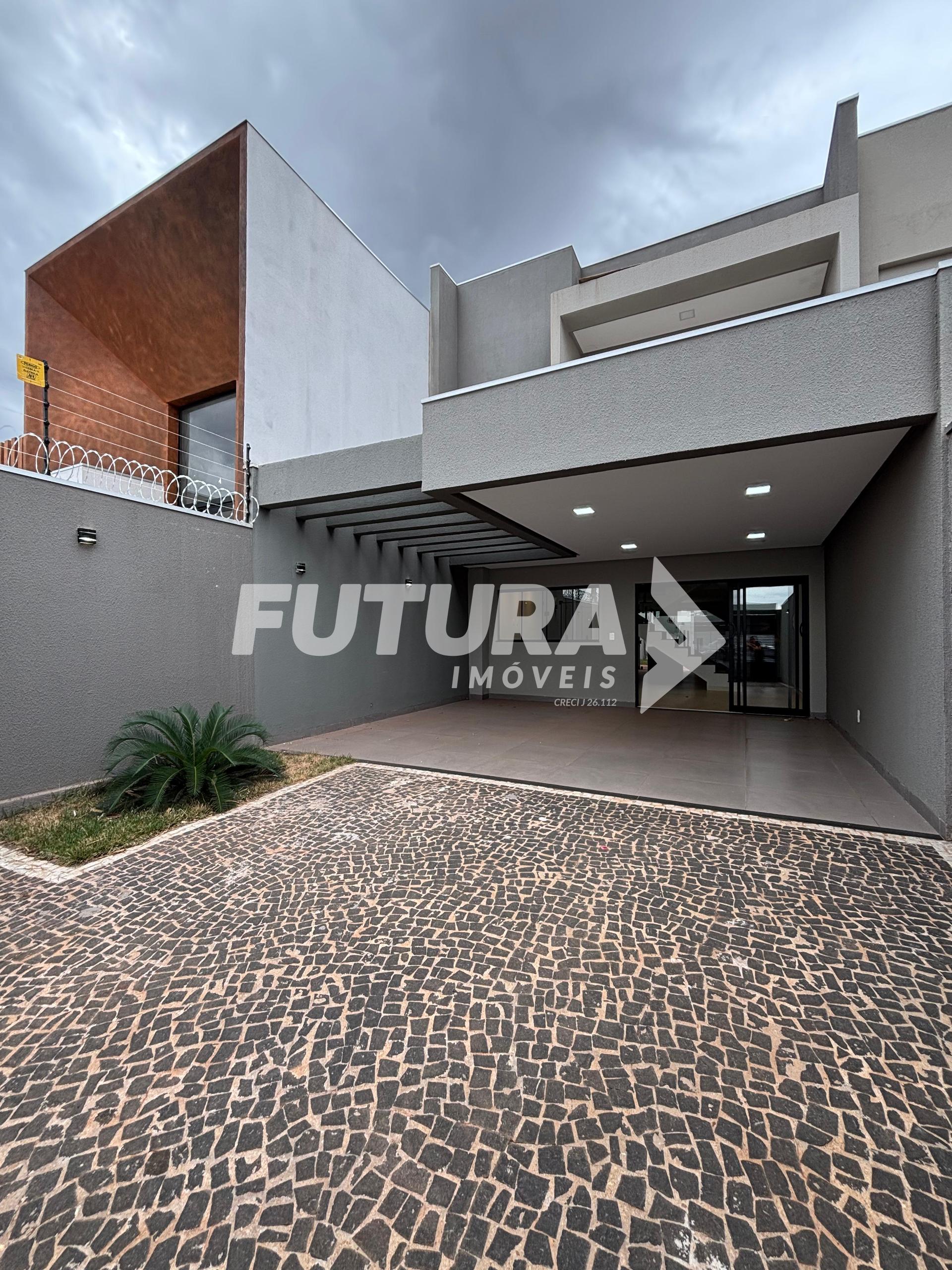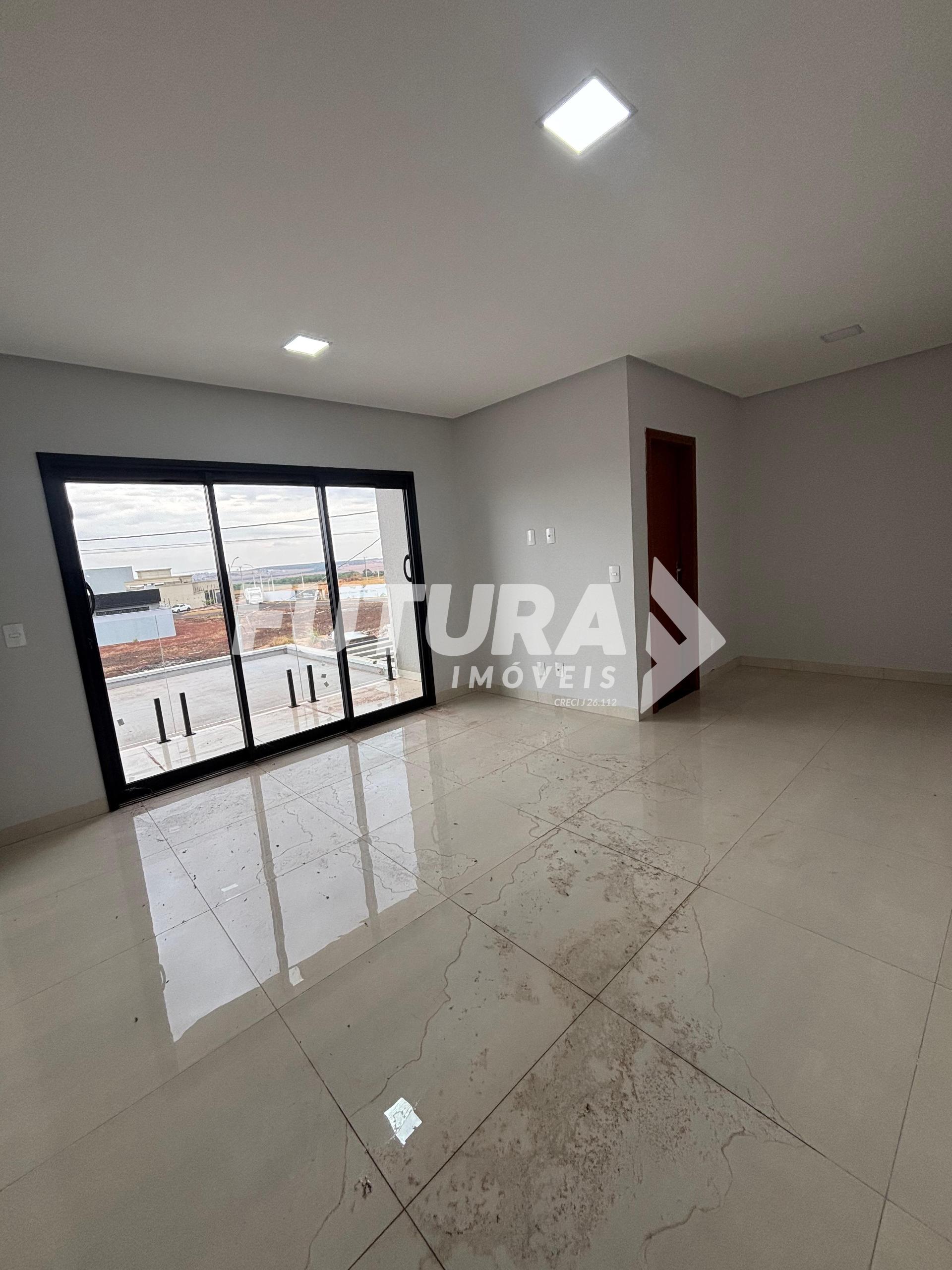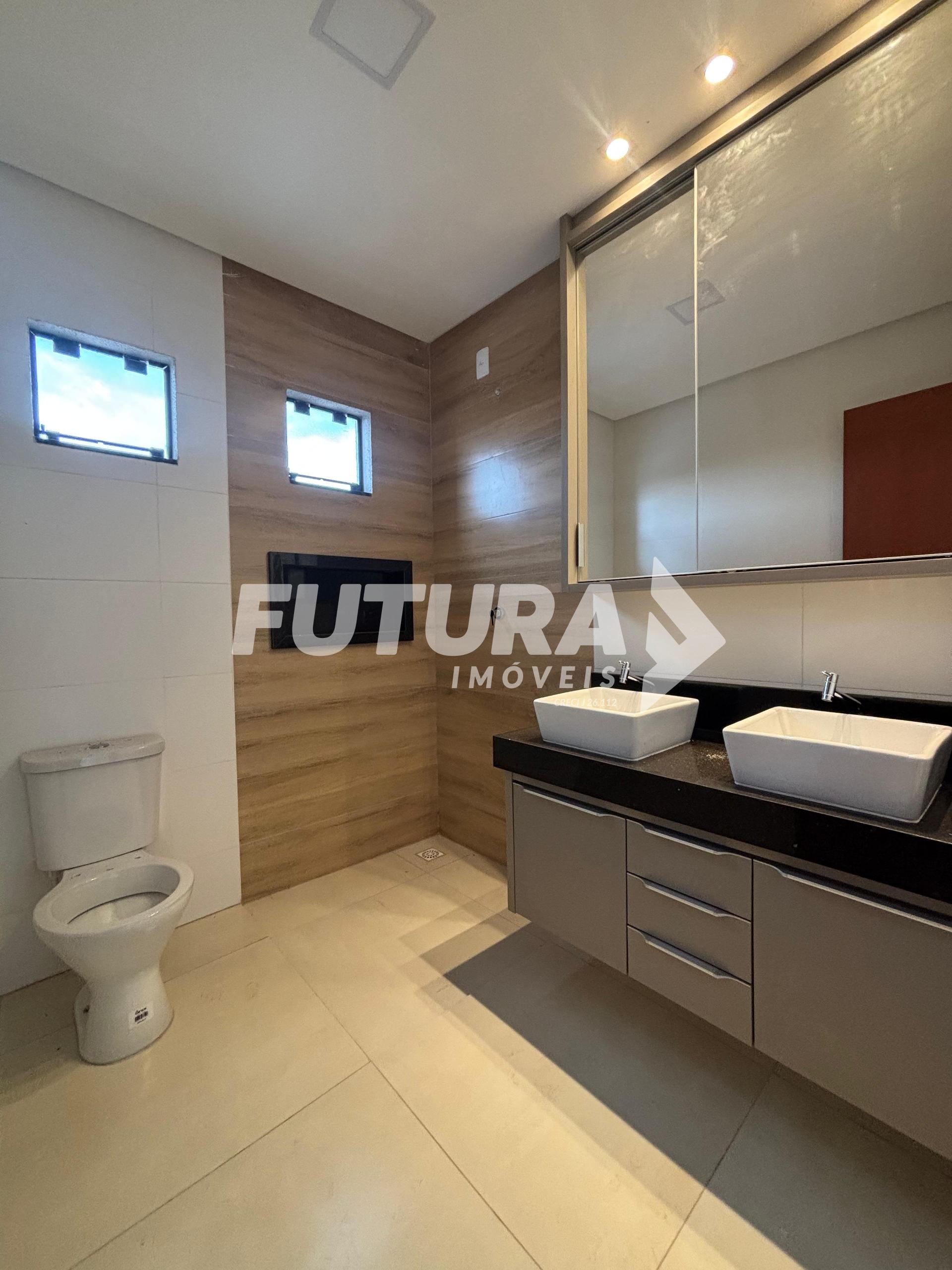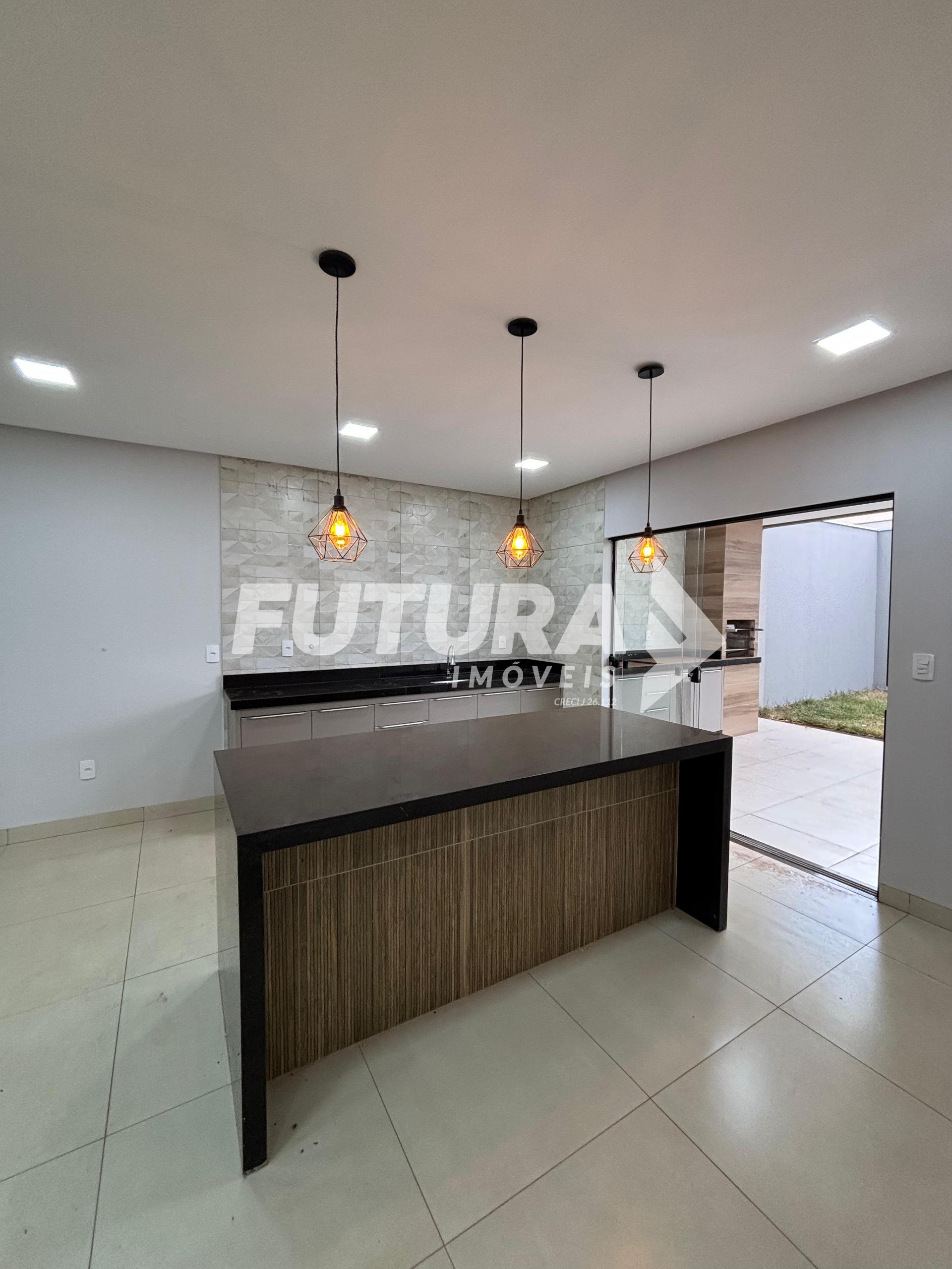 Piso inferior: Sala ampla, claraboia, cozinha em ilha, lavabo, área gourmet com churrasqueira, área de serviço coberta, quintal.